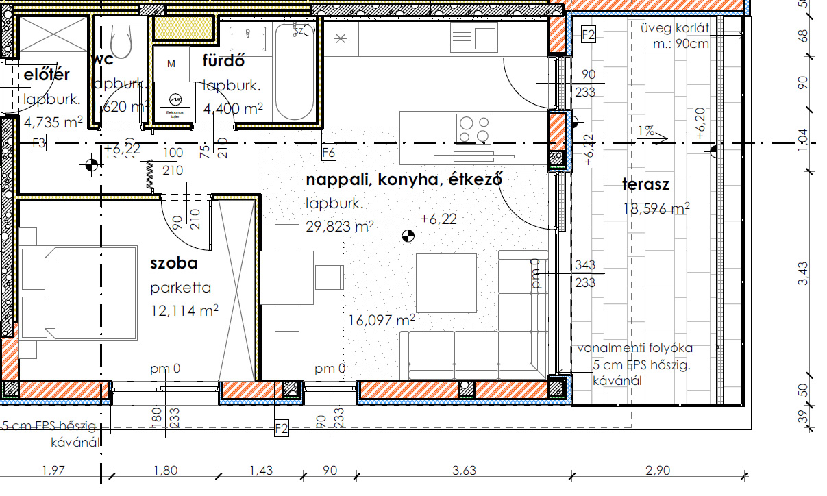 Össz m2 terasz felével